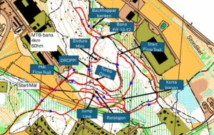 Bana: Banan är en blandning av maskingrävd flowbana, rotstig, snabba enklare stigar, hopp och dropp.