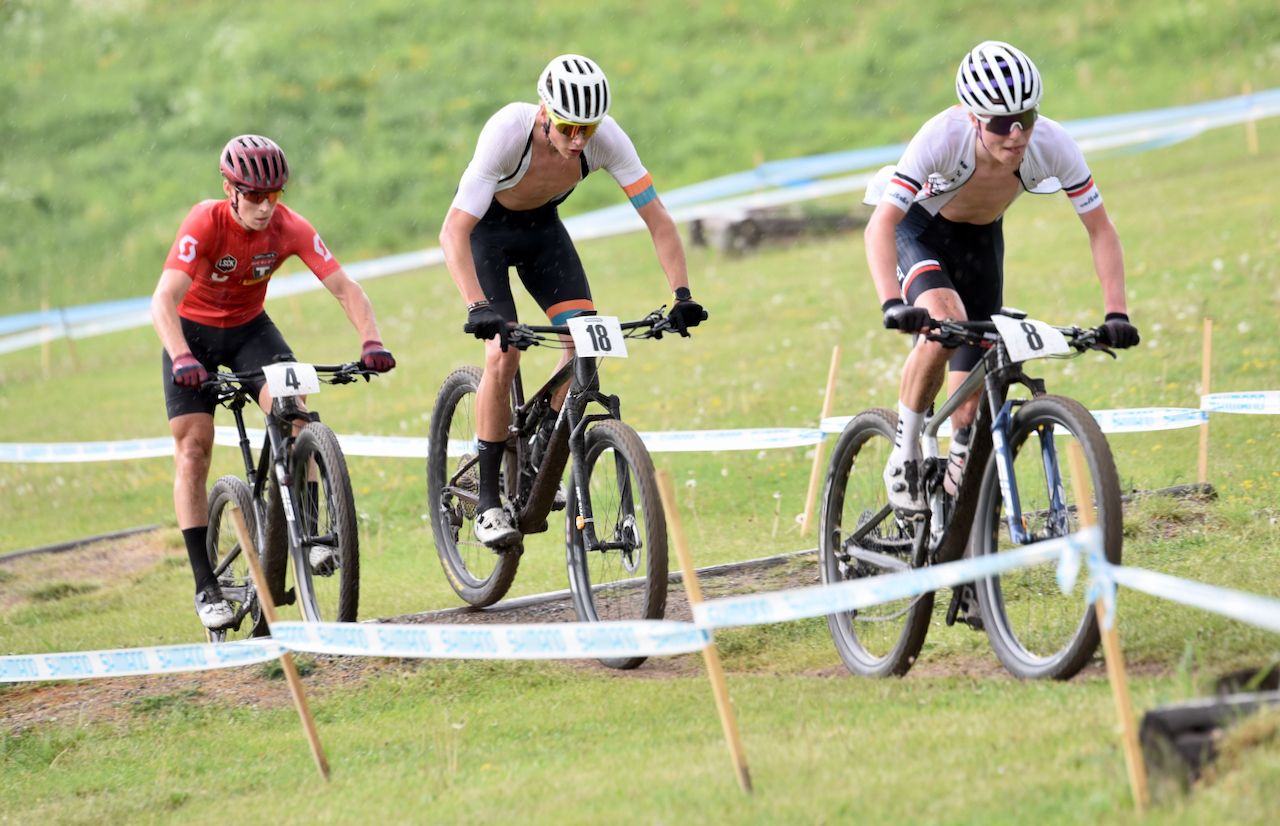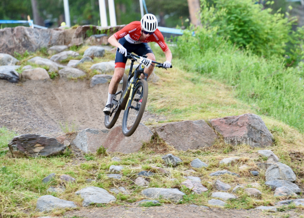 Markus Karlsson har också kört stabilt internationellt och var tvåa. Fin fajt om tredjeplatsen också i ett XCO-juniorlopp som slutade så här: