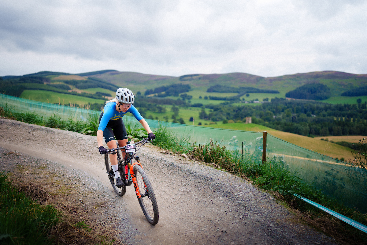 ”Det går verkligen fort i det här loppet men jag tycker att Linn kör bra”, sammanfattar Petter Mattsson – det finns fler närvarorapporter längs banan på @swecycling_mtb och loppet går att se i efterhand på SVT Play.