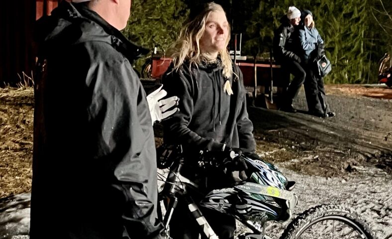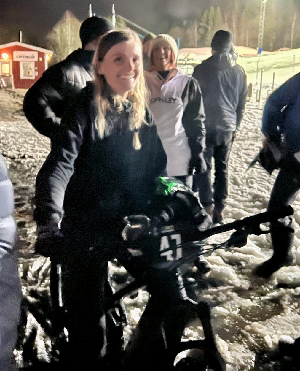 ”Nej, jag tror jag var tvungen att köra lite: Jag skulle visst preparera för skidalpinisteras SM-lopp…men jag ska hem och ladda med lite mat först”, ler Emilia som alltså också hade lite del i den där lovordade banpreparationen som inte minst under de två senaste dagarnas regnande har krävt en hel massa jobb.